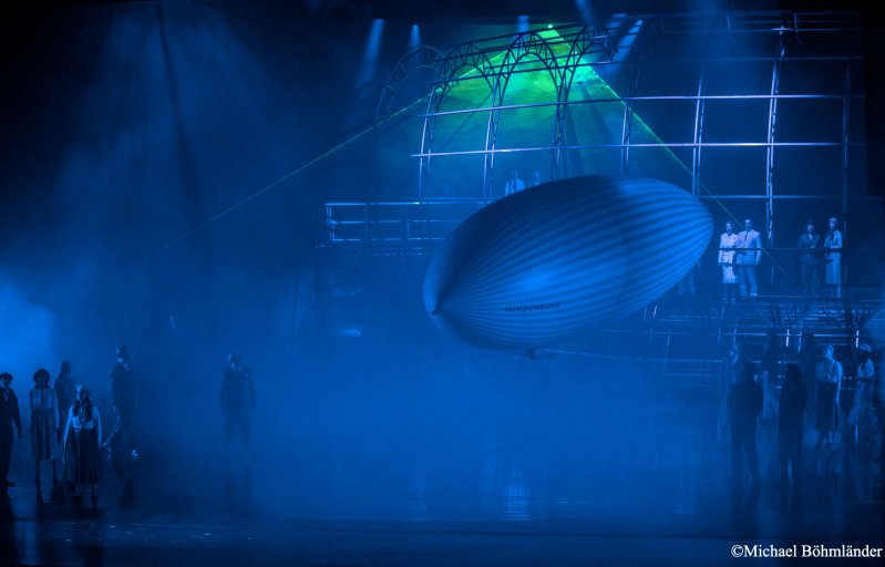Das Stück unter der Regie von Benjamin Sahler zeigte alles, was in einem Musical möglich ist. Von Akrobatik und Hebebühnen über Wasser auf der Bühne und einer kleinen Hindenburg, die von der Bühne aus kurzzeitig über den Köpfen der Zuschauer schwebte, bis hin zu einem auf die Bühne fahrenden Oldtimer und einem echten Hund - die Zuschauer bekamen das ganze Stück über viel Spektakel geboten. Nach dem nachgestellten Absturz der damaligen Hindenburg mit 97 Menschen an Bord wurde dann sogar eine Schweigeminute für die 35 Opfer an Bord und das eine Opfer der Bodenmannschaft eingelegt.